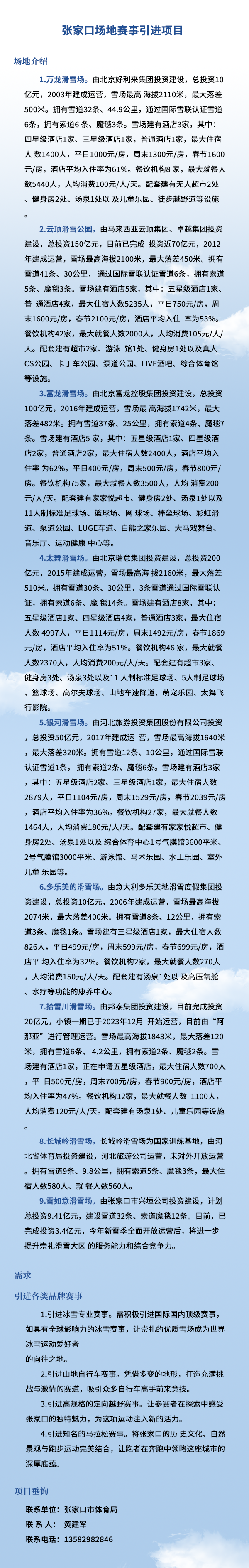 一图看懂河北省张家口体育赛事资源和重点推介项目