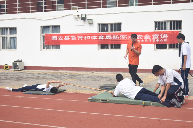 活动中,固安市民活动中心国家一级游泳运动员付建康教练,根据防溺水安全教育计划及青少年儿童的年龄特点,向青少年儿童宣传如何预防溺水、溺水救助技能等安全知识及溺水后的正确施救方法。