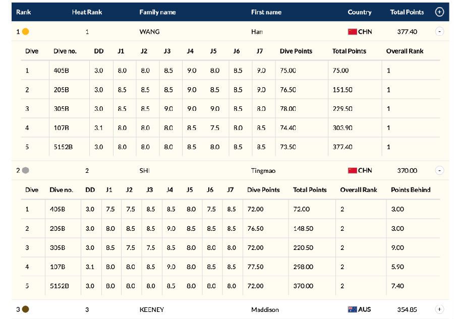 女子单人三米板五轮比分