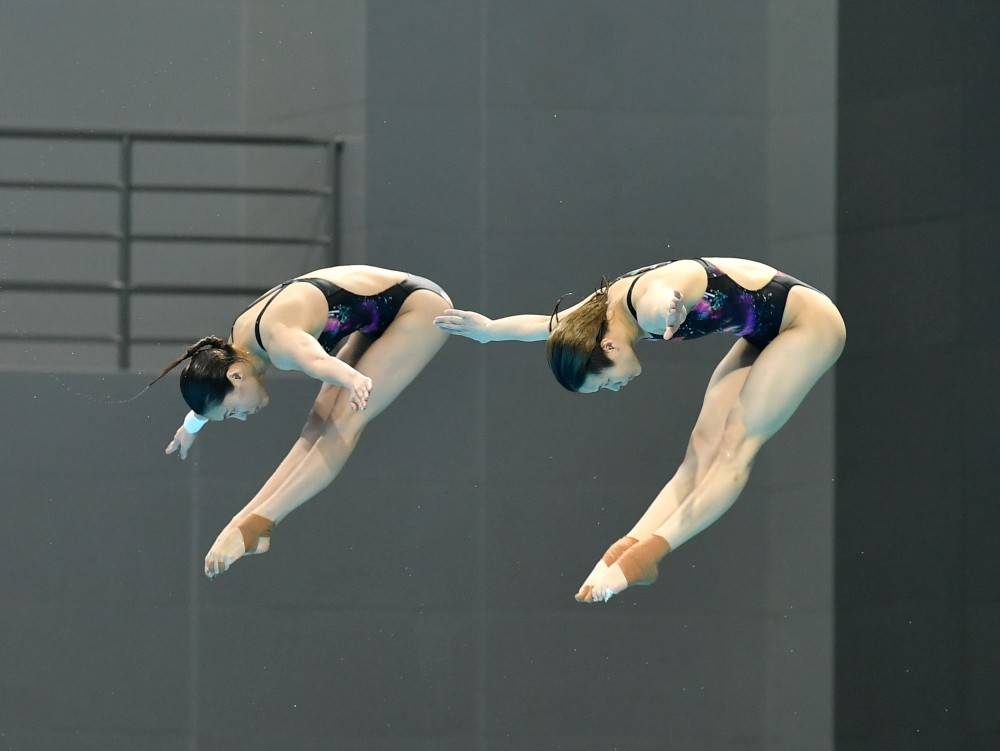在首日进行的女子双人3米跳板决赛中,王涵和施廷懋在前两轮规定动作后,就以108.60分高居榜首;第三轮,两人更是发挥稳定,得到77.40分;随后两轮,王涵和施廷懋成功完成了305B(反身翻腾两周半屈体)和405B(向内翻腾两周半屈体)动作,均得到77.40分,最终以总成绩340.80分夺得冠军。