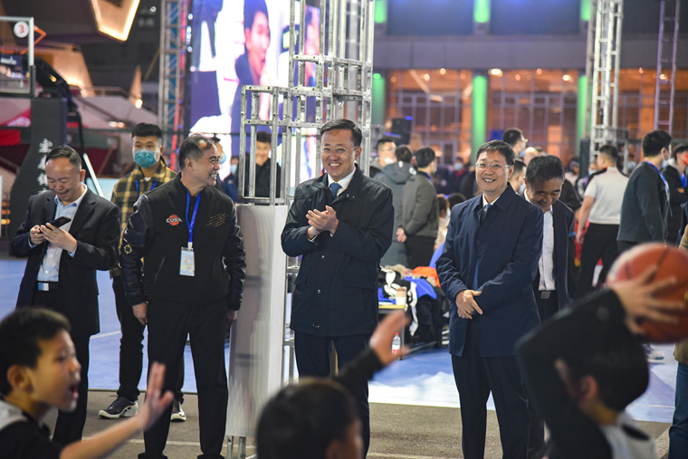 开幕式结束后,参加开幕式的领导嘉宾一同来到比赛场地,观看了U10、U8、三人制篮球赛,观赛过程中,张泽峰局长不时就赛事设置、场地设置、选手年龄等问题向相关人员进行询问,并与场边等待参赛的小运动员亲切交谈,详细了解小队员平时学习、训练、参赛等情况,鼓励小队员积极参加体育锻炼,通过篮球比赛增强身体素质、提升自信心。