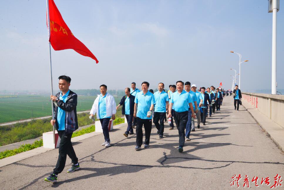 4月26日上午,省体育局组织局机关、体育总会等单位的干部职工参加了在石家庄鹿泉区黄壁庄水库大坝举行的省直干部职工健步走展示活动。省体育局队伍高举队旗,在副局长何文革、田建功,副巡视员陈飞的带领下,精神振奋、意气风发、整齐划一,顺利完成全程7公里的健步走展示。