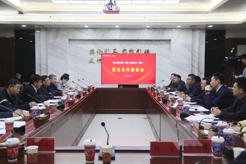 11月6日,省体育局党组书记、局长王彪一行到河北广播电视台(集团)走访调研,省委宣传部副部长,台(集团)党委书记、台长武鸿儒参加相关活动,双方围绕贯彻落实习近平总书记关于体育事业发展、体育强国建设的重要指示精神,高质量推进体育强省建设进行深入研讨。省体育局党组成员、副局长田建功,台(集团)党委副书记、总经理肖钧,党委委员、副台长冀国锋参加。