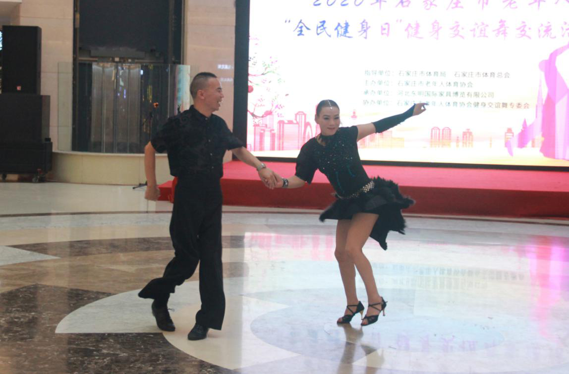2020年8月8日是国家第十二个全民健身日,为配合《河北省全民健身条例》的实施,丰富中老年人的健身生活,由石家庄市体育局、石家庄市体总会指导,石家庄市老年体协主办的2020年石家庄市老年人“全民健身日”健身交谊舞交流活动在东明国际家具博览中心东二环店举行。活动以“推动全民健身,助力全面小康”为主题,河北省老年体协副主席庞毅、石家庄市老年体协副主席刘莎等嘉宾到场参加活动。