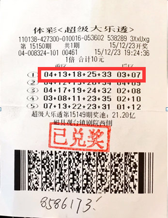 通过票面看,该张票是张简单的10元基本投注票,该彩民还是比较幸运的,因为第一注便是当期的中奖号码04 13 18 25 33+03 07,唯一可惜的一点是该彩民没有养成追加的习惯,如果追加的话总计奖金可得1373.78万元多得515万!