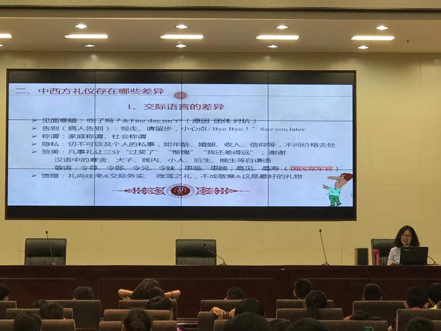 中国是礼仪之邦,灿烂的五千年华夏文明,在世界上影响深远。但在200多年,随着西方国家的崛起,西方主导着世界,现今国际通行的礼仪基本上是西方礼仪。随着改革开放的推进,跨国交际日益增多,中方礼仪差异越发显露,在交际中可能会因为不了解这些差异而引起误会和笑话。本次讲座使同学们更深入理解了中西方礼仪差异,开拓了视野,了解了不同国家礼仪习惯,为以后跨文化交际的顺利进行打下了良好基础。