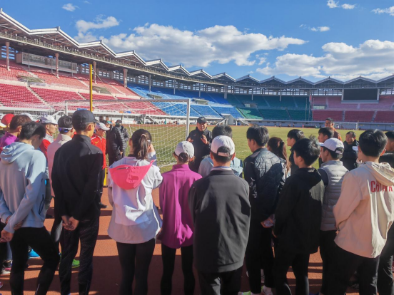 随后,两位老师还深入训练现场对竞走运动员进行了技术指导。