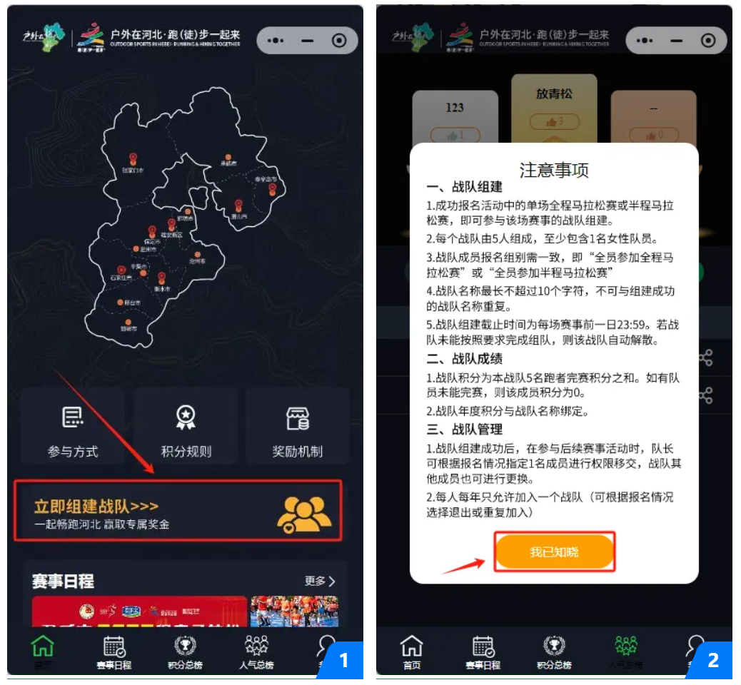 “户外在河北·跑(徒)步一起来”活动「战队组建」仅限已成功获得8场赛事中任意一场“马拉松项目”或“半程马拉松项目”参赛名额的选手,不包含“10公里”“5公里”“欢乐跑”“健康跑”等项目参赛选手。