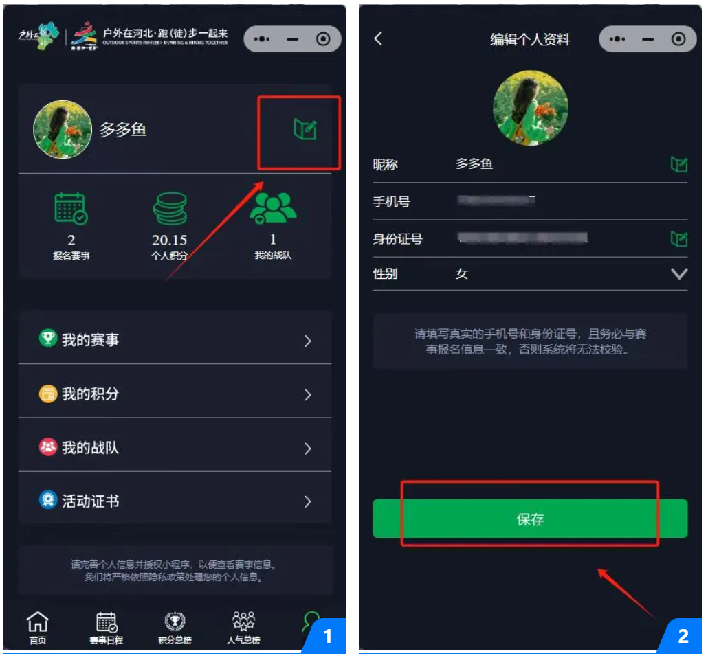 完善个人资料并绑定赛事信息