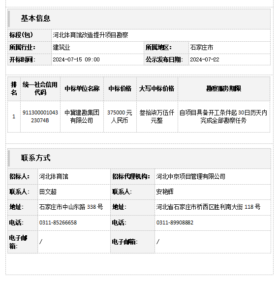 体球网即时比分 馆改造提升项目勘察中标结果公告
