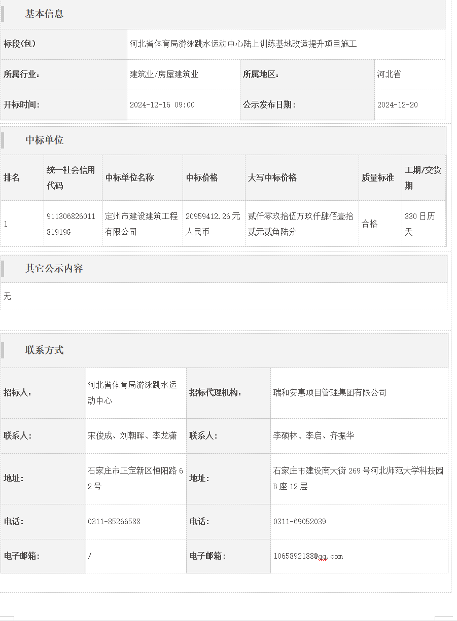 体球网(spbo)足球即时比分查询 游泳跳水运动中心陆上训练基地改造提升项目施工中标公告