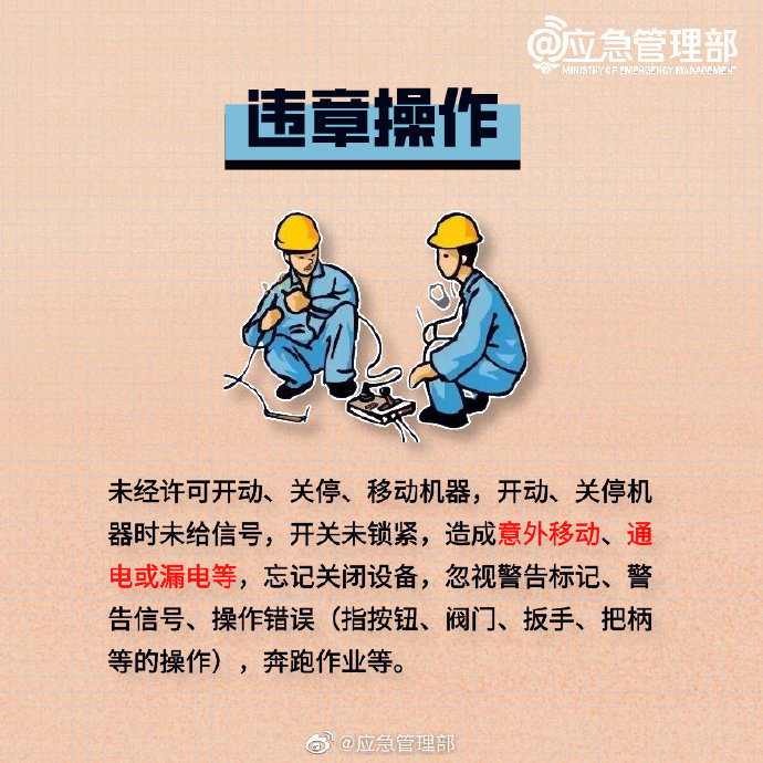 生产现场常见的八大危险 来源:中国应急信息网 时间:2021-06-08 安全生产关系到人民生命安全,确保施工安全意义重大。生产现场常见的八大危险你是否知道如何应对呢?戳图了解。 责任编辑:体球网(spbo)足球即时比分查询