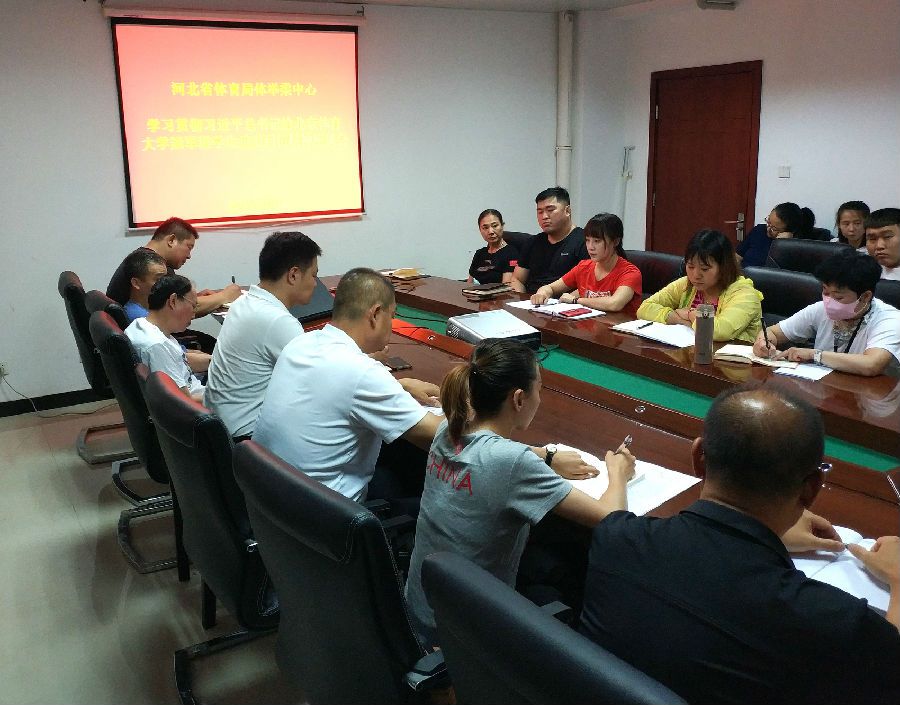 会议首先由中心副主任赵颖慧传达了6月18日习近平总书记给北体大冠军班的回信全文以及6月25日省体育局座谈会有关精神。中心体操队教练员、北体大2016级研究生冠军班学员庞盼盼介绍了总书记回信的有关情况。