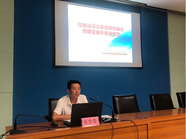 课上,张全奎主任围绕体球网即时比分 融媒体平台建设,以“在推动体球网即时比分 媒体融合创建与发展中担当作为”为题,从什么是融媒体、为什么发展融媒体、如何发挥《体育生活报》在融媒体中的作用、河北融媒体目前发展现状及存在的问题等多个方面对体球网即时比分 媒体融合建设作了全面、系统、深入讲解,并提出了发展建议。他还结合具体工作实例,分享了自己多年的从业经验和对体球网即时比分 媒体工作的独到见解,课堂氛围活跃,取得良好效果。
