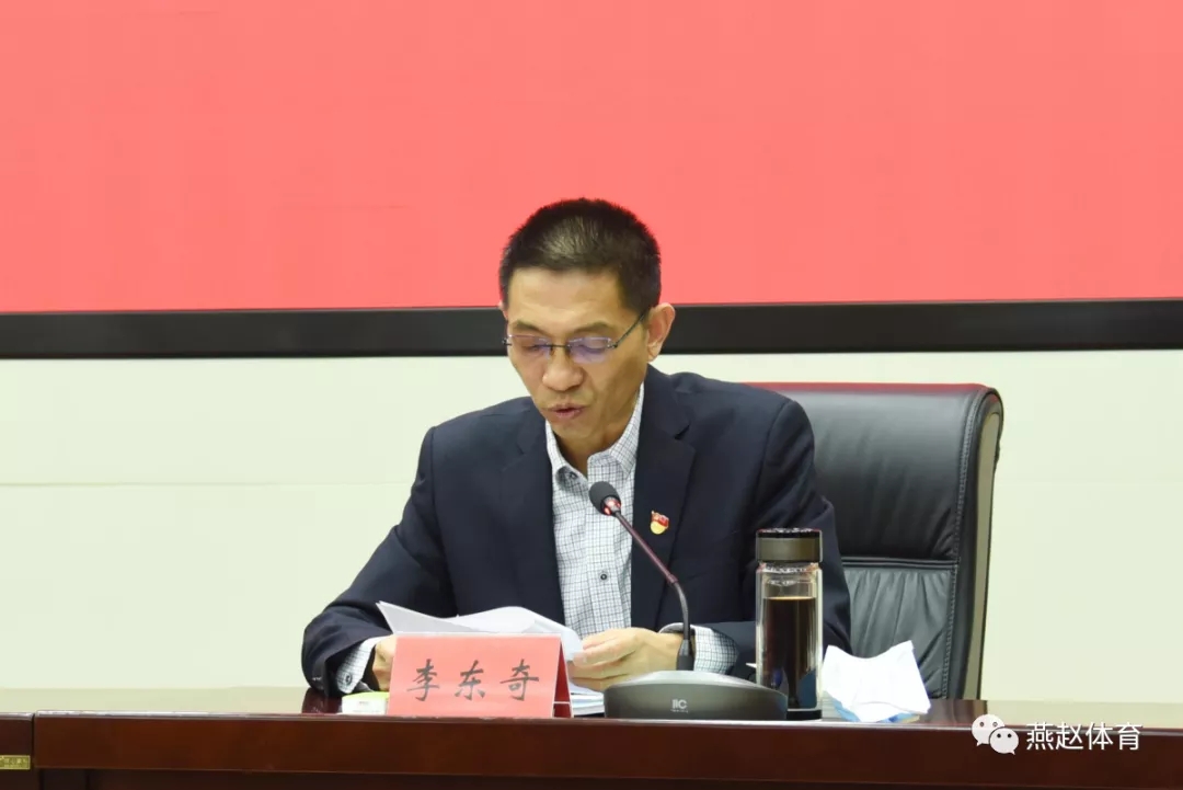 李东奇在主持会议中指出,以此次动员会为标志,省体育局党史学习教育正式启动、全面展开。各处室、各单位要把开展好党史学习教育作为当前和今后一个时期的首要政治任务抓紧抓实,迅速组织传达学习会议精神,深刻领会开展党史学习教育的重大意义、重点工作和各项要求,把全体干部职工的思想和行动统一到中央和省委的决策部署上来。要按照张泽峰局长讲话要求,紧密结合体育工作实际,制定工作方案,建立任务清单,成立领导机构,精心组织实施,高质量高标准抓好党史学习教育,带领全体党员学史明理、学史增信、学史崇德、学史力行,学党史、悟思想、办实事、开新局,以昂扬姿态奋力开启全面建设社会主义现代化国家新征程,以优异成绩庆祝建党100周年。