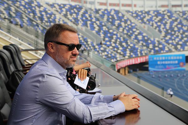 9月12日上午,河北省第十五届运动会田径比赛在石家庄裕彤国际体育中心如火如荼地进行,现场精彩连连。赛场外,“台球皇帝”史蒂芬·亨德利的现身,给了观众和选手一个惊喜。