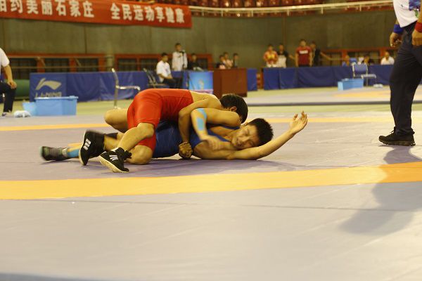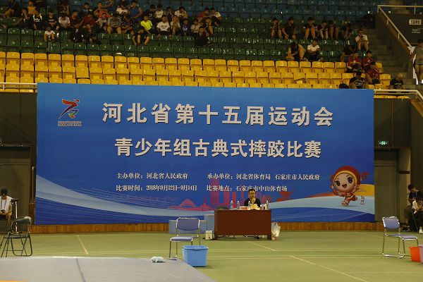 9月13日下午,河北省第十五届运动会青少年组国际式摔跤(古典式)在石家庄市中山体育馆结束了第二天的比赛,共计产生了男子甲组66公斤级、74公斤级、84公斤级、乙组58公斤级、63公斤级、69公斤级6个项目的冠军。