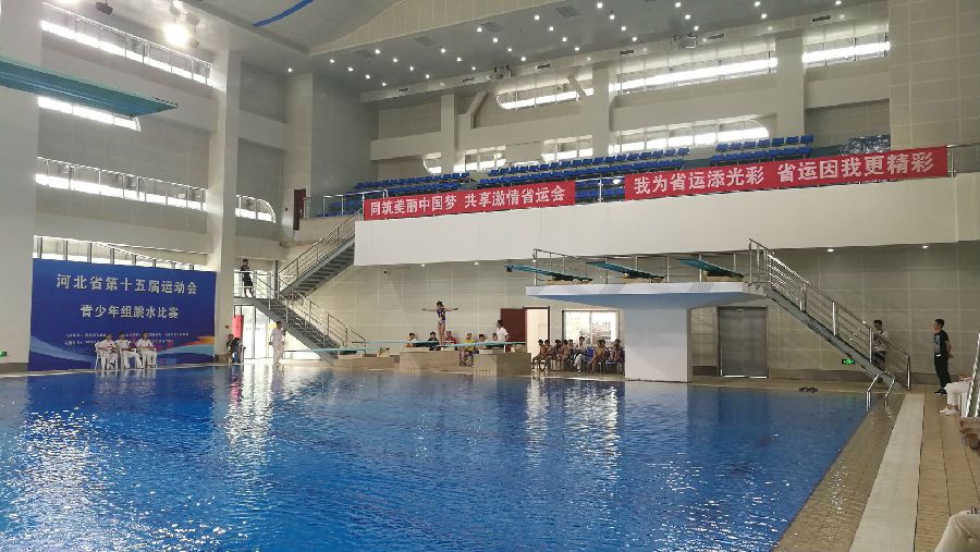 此次跳水测试赛分为陆上体能、陆上专项和水上专项三个部分,两个陆上部分分别在石家庄裕彤体育场健身房和石家庄游泳学校跳水陆上房进行,水上部分在石家庄全民健身中心跳水馆进行。