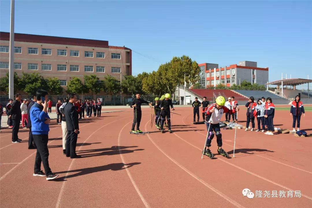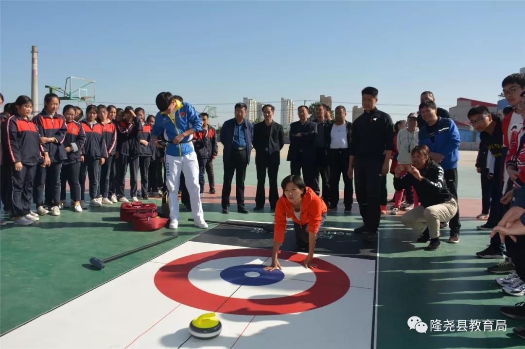 为落实国家三部委《冰雪运动发展规划(2016-2025)》(体经字〔2016〕645号)、《北京2022冬奥会和冬残奥会中小学生奥林匹克教育计划》(教体艺〔2018〕1号)的相关要求,扎实推进冰雪运动进校园计划,厚植青少年冰雪运动基础,10月31日,隆尧县文化广电体育和旅游局和县教育局特聘请体球网即时比分 学院冰雪运动系副主任高斌、教练任振华(原国家队短道速滑队员)和郝梦雨到县一中、尧山中学就冰壶、滑雪项目进行专项培训,来自县中小学的体育教师20余人到场观摩学习。培训期间,高斌、任振华等教练对两个项目进行了专业讲解,教师与学生兴致高涨,积极主动参与其中,通过指导,他们初步掌握了基本动作,激发了师生对两项运动的兴趣。