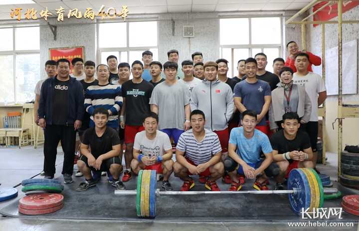 云艳红(二排右一)与省举重队合影。记者许晓星 摄