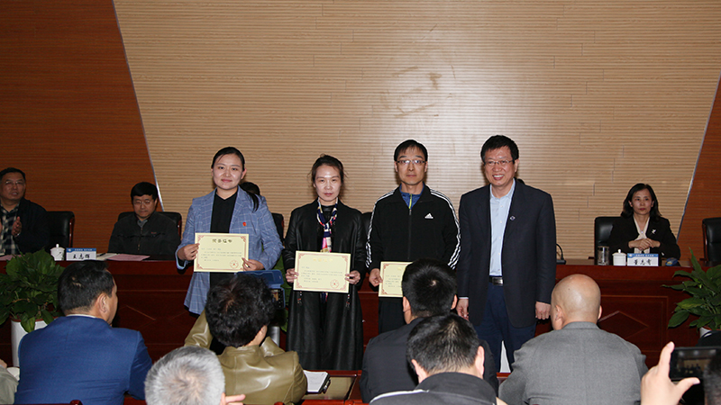 院党委常委、组织部长刘哲剑为2018年就业创业工作先进单位颁奖
