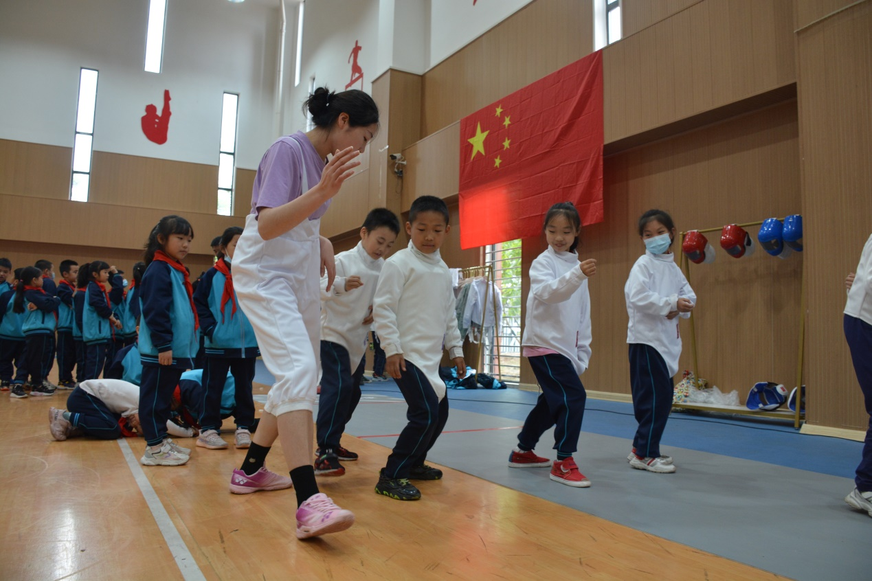 在开齐开足课时的同时,把体育课划分为常规体育课和专题体育课,分年级为孩子们开设每周一次专题轮滑课,一次专题武术课;隔周一次篮球课、一次足球课、一次健美操课,一次击剑体验课,一次轮滑球训练课。