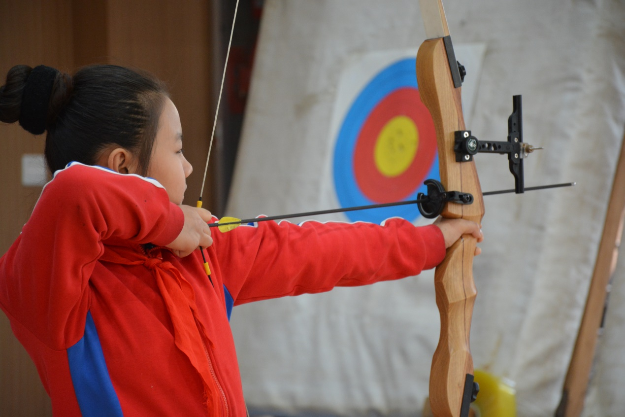 射箭是民族传统运动项目,教师充分发挥课程优势,进行德育渗透,让德育与射箭有机结合。射箭是动静结合的运动项目,培养了学生集中注意力的习惯,这项运动不仅增强学生身体素质,锻炼心理素质,也培养学生顽强拼搏的意志品质。