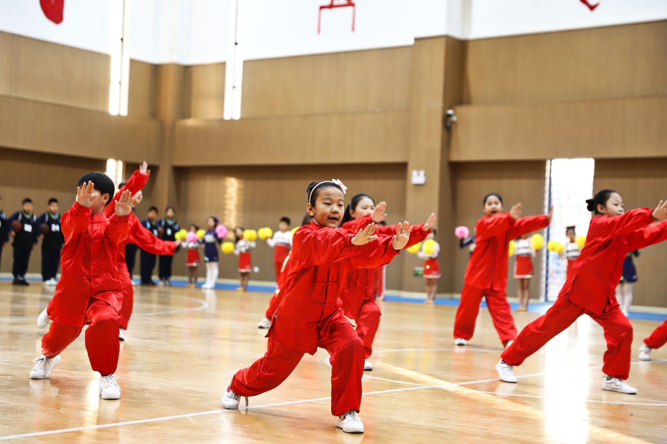 7.武术社团。社团讲解武术发展历程,学习武术基本功、基本技术动作和相应的武术组合动作,让学生在愉快的学习氛围中,了解和学习武术文化内涵。同时提高学生动作的稳定性、准备性与连贯性,培养学生站如松、坐如钟的良好姿态和坚韧不拔的尚武精神,可以更好的让学生感受武术的乐趣。