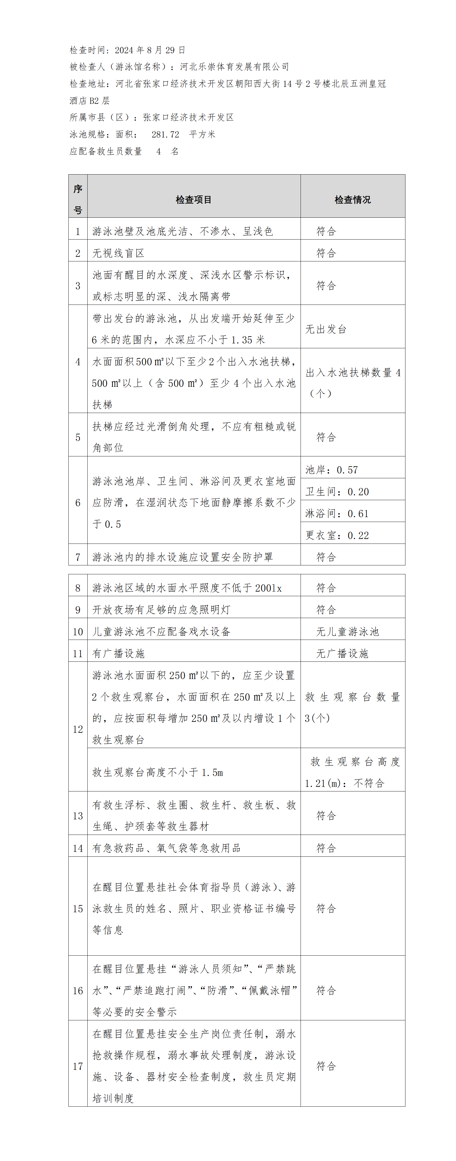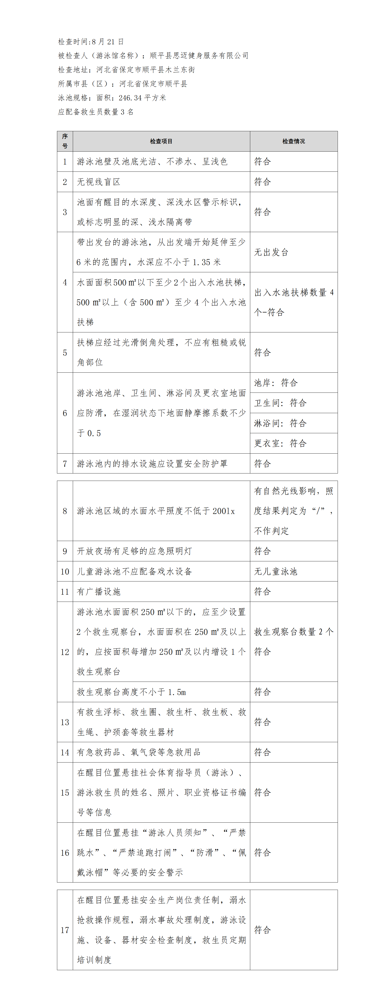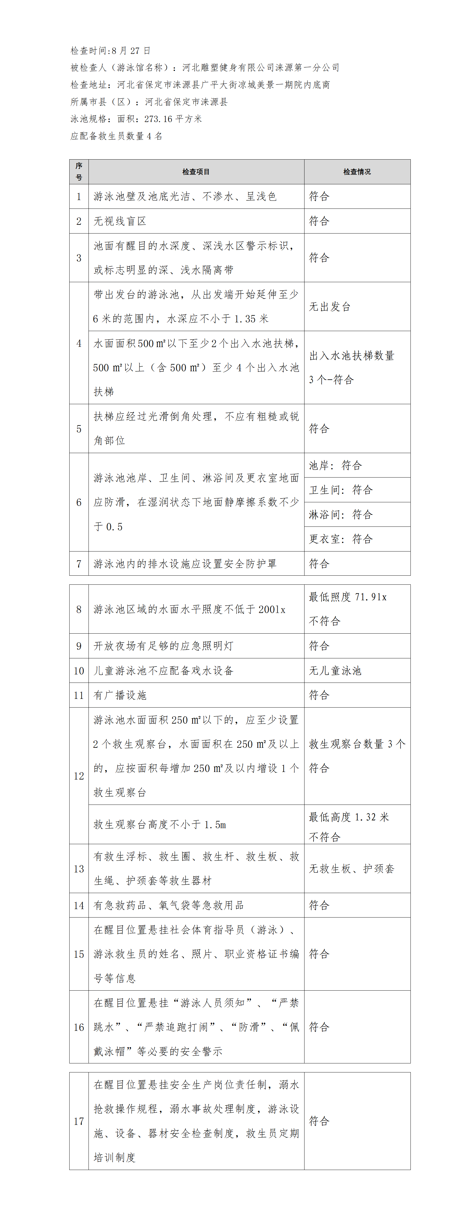 河北省游泳馆双随机安全检查结果公示