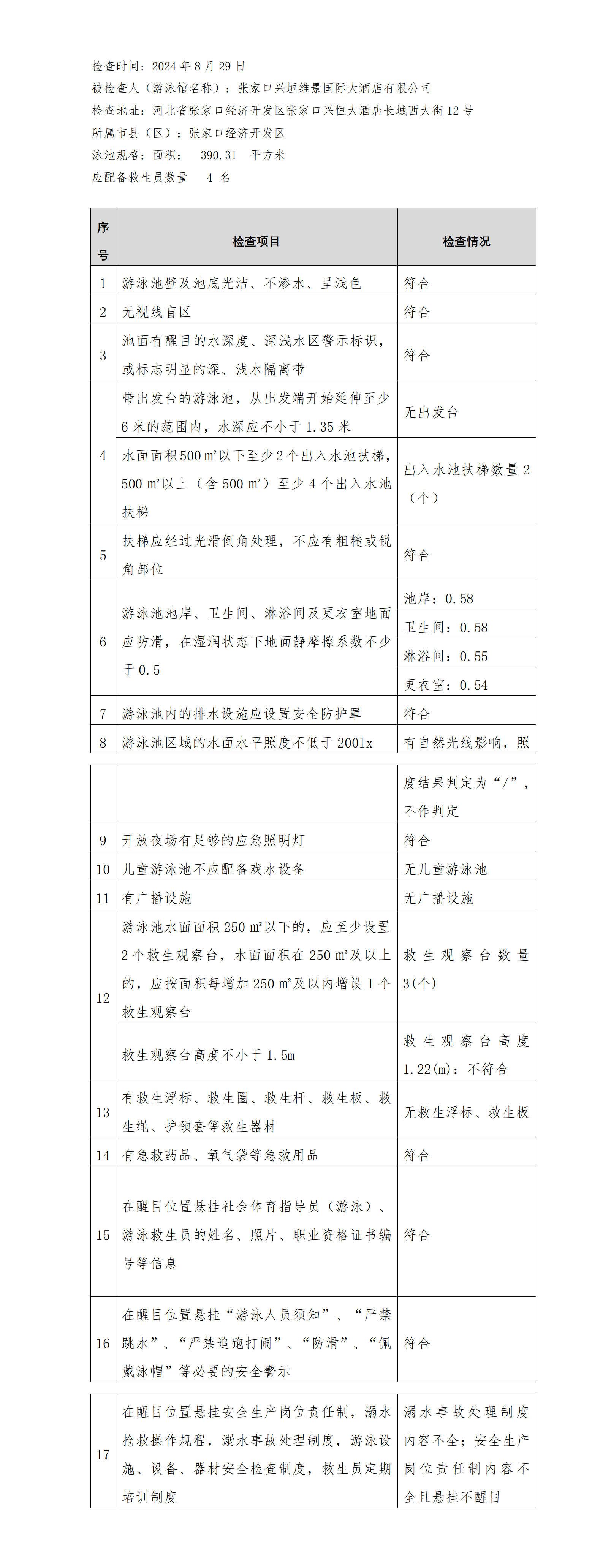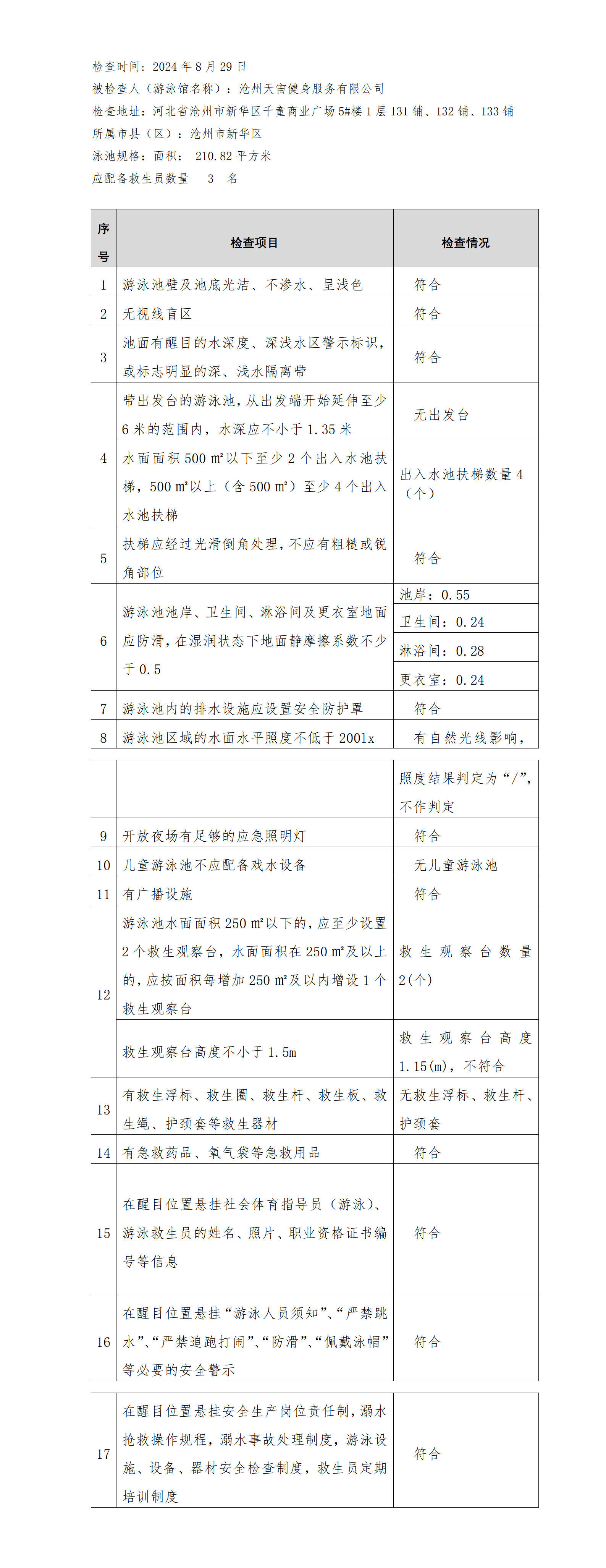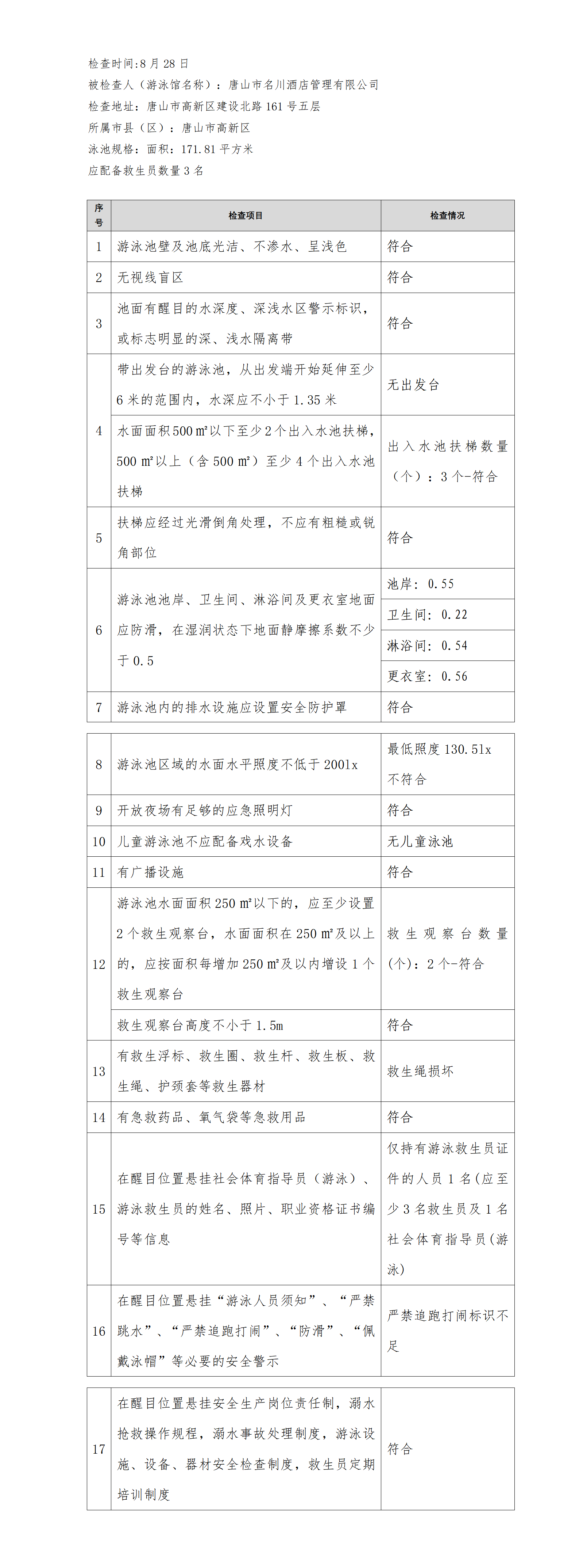 河北省游泳馆双随机安全检查结果公示