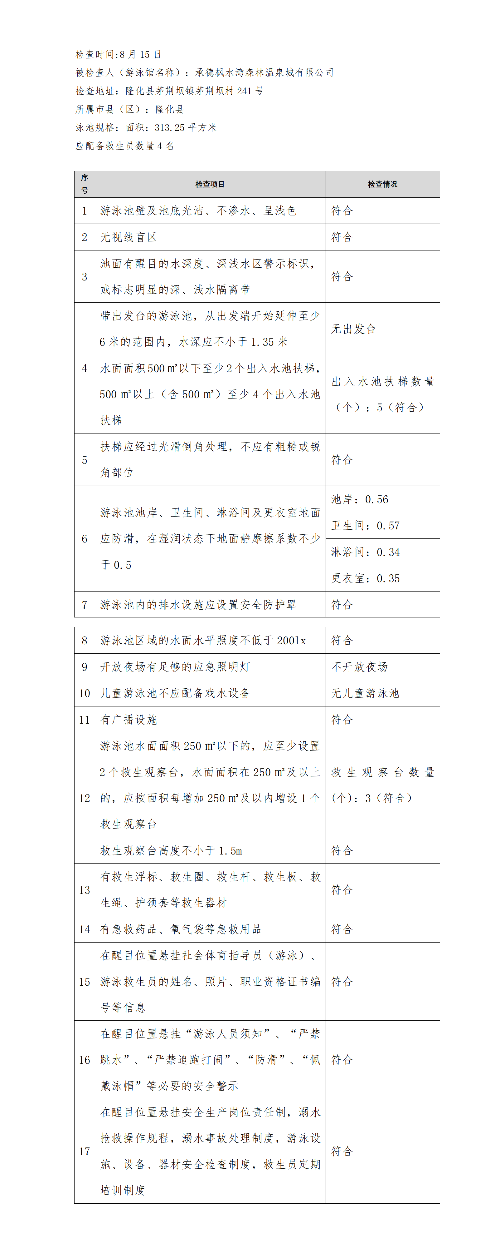 河北省游泳馆双随机安全检查结果公示